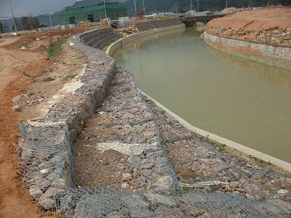 鋪設(shè)了帶有石籠網(wǎng)保護(hù)設(shè)施的擋土墻。籠子中的填充物疏松,有許多孔,有利于邊坡防護(hù)和砌筑后的填充,有利于土壤中孔隙水的排泄。地表水一旦滲透到土壤中,便可以通過砌體快速排出,有效地降低了地下水位,然后降低了墻后和斜坡下的地下水壓力。用于河道治理的石籠網(wǎng)的布置在滑坡管理和泥石流防治項(xiàng)目中,及時(shí)排水以減少墻體破壞的可能性。